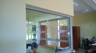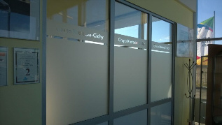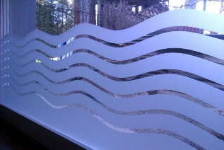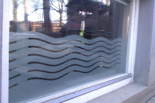 Folia dekoracyjna imitująca matowione, piaskowane szkło. Przeznaczona do ekspozycji grafiki na szybach okiennych, witrynach itp.